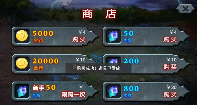 购买需要联网,不要真的支付,退出后会显示失败,但道具会给你